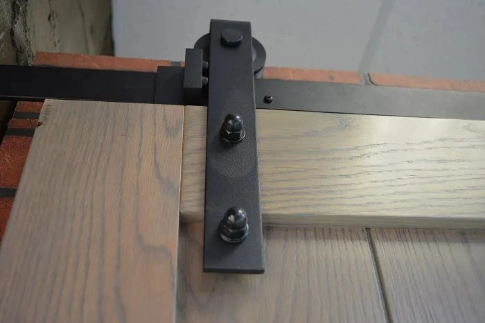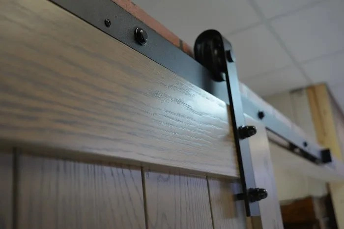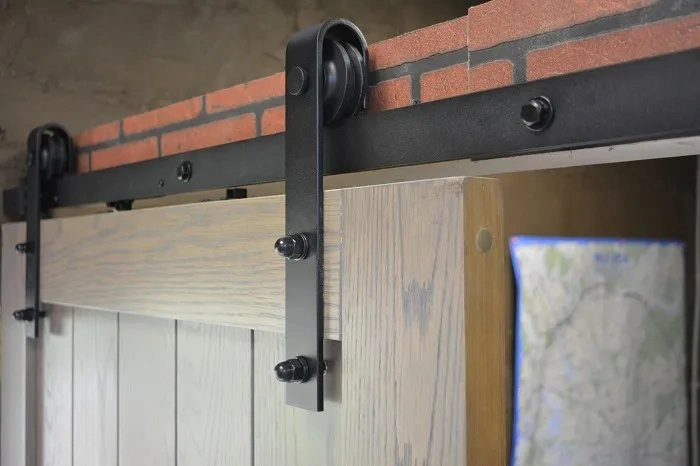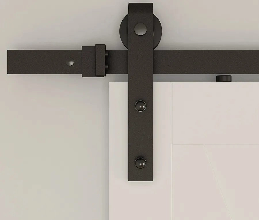 Амбарный механизм открытого типа в стиле Лофт, черный с накладным крепежом. Для направляющей 2000 мм.