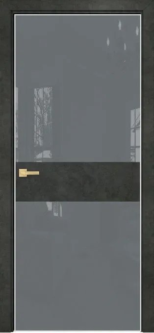 Дверь Оникс Соло 2 бетон темный, глухая, Lacobel RAL 7040.