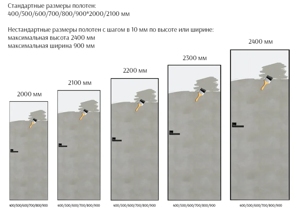 Доступные размеры: 400*2000, 400*2000, 500*2000, 500*2000, 600*2000, 600*2000, 700*2000, 700*2000, 800*2000, 800*2000, 900*2000, 900*2000