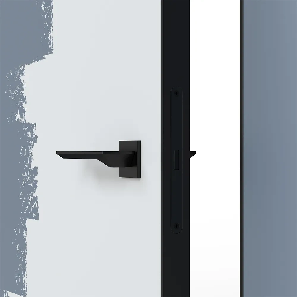 Реверсное полотно на 10 мм выше, что позволяет визуально не резать глаз рядом стоящих дверей разного открывания.