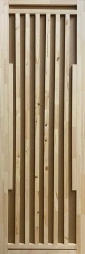 Полотно имеет усиленный каркас с ребрами жесткости из сращенного бруса массива сосны. Сторона под покраску, грунтуется двухкомпонентным грунтом, идеально гладкое и влагостойкое. Наполнение жесткое сотовое, предотвращает деформацию полотна, вследствие внешних ударов, давления. С обеих сторон плиты МДФ толщиной 6 мм.