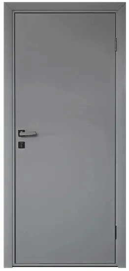 Пластиковая дверь гладкая Eta Door с коробкой, кромка ABS, серая RAL7035, глухая. Абсолютно влагостойкая и паронепроницаемая.