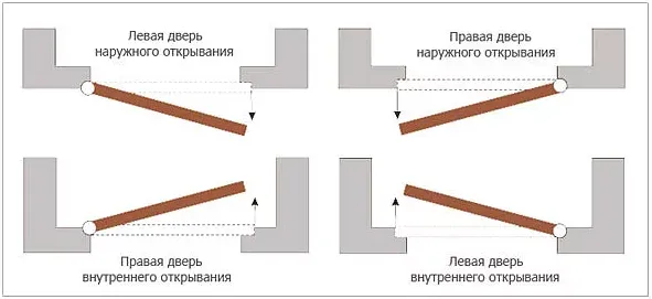 Примечание : при обозначении стороны открывания для дверей в компланарных коробках, важно указать с какой стороны стены должно быть полотно под лицо с наличником (со стороны коридора или внутри комнаты).