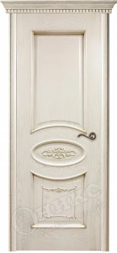 Дверь Оникс Эллипс с декором эмаль слоновая кость патина золото, глухая
