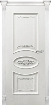 Дверь Оникс Эллипс с декором эмаль слоновая кость патина серебро, глухая
