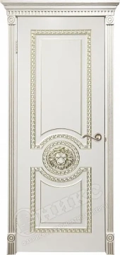Дверь Оникс Цезарь фрезерованная эмаль слоновая кость патина золото, глухая